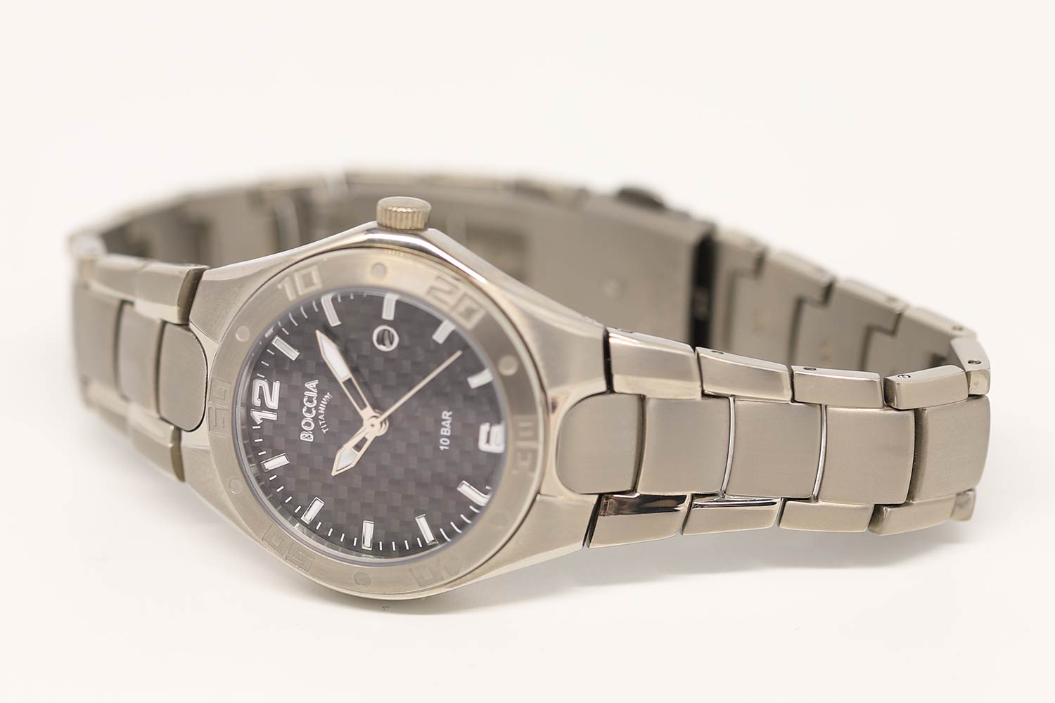 Главная особенность часов BOCCIA — использование чистого титана. Этот материал значительно легче нержавеющей стали, при этом обладает высокой прочностью и устойчивостью к коррозии. Благодаря титановому корпусу часы практически не ощущаются на руке, что делает их идеальным выбором для ежедневного ношения, в том числе в течение всего дня.