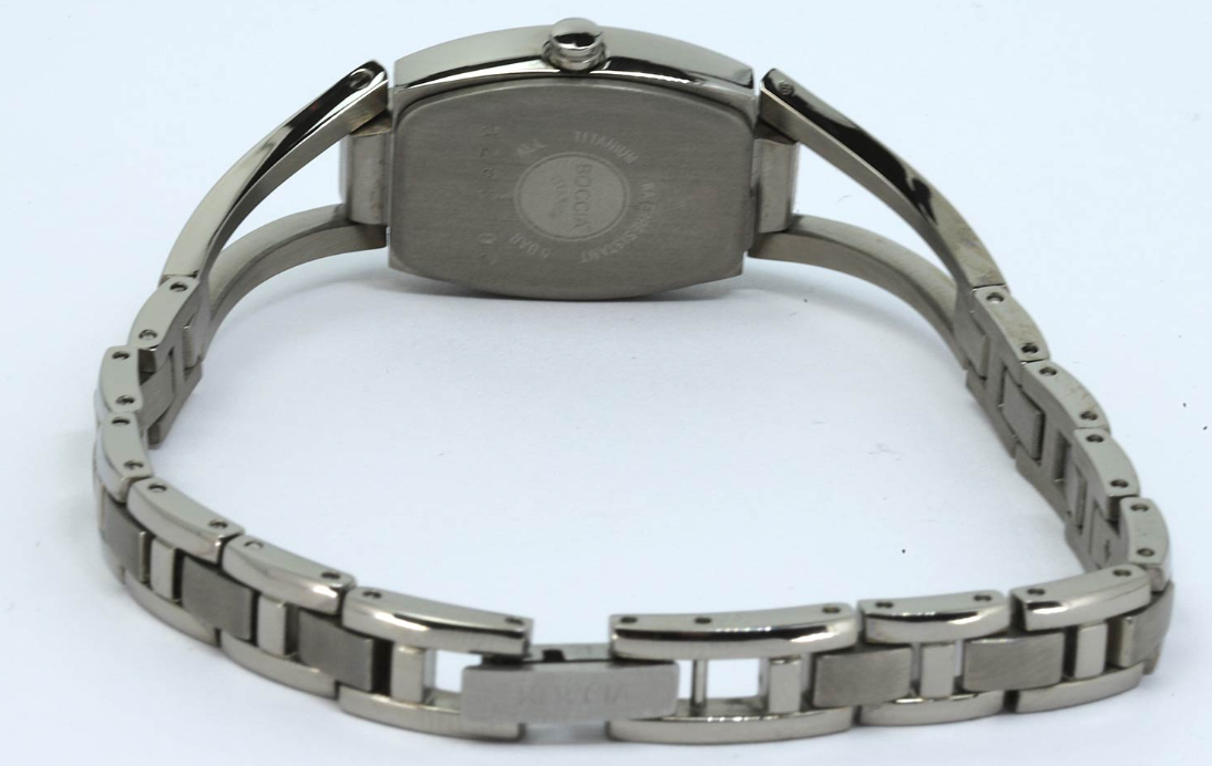 Корпус часов BOCCIA Titanium отличается аккуратной формой и продуманной эргономикой. Все элементы конструкции выполнены с высокой точностью, характерной для немецких брендов. Прочное минеральное или сапфировое стекло надёжно защищает циферблат от царапин и сохраняет прозрачность в течение длительного времени.