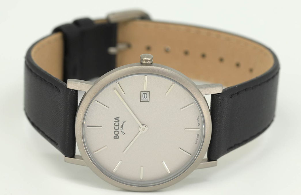 Корпус часов BOCCIA Titanium отличается аккуратной формой и продуманной эргономикой. Все элементы конструкции выполнены с высокой точностью, характерной для немецких брендов. Прочное минеральное или сапфировое стекло надёжно защищает циферблат от царапин и сохраняет прозрачность в течение длительного времени.