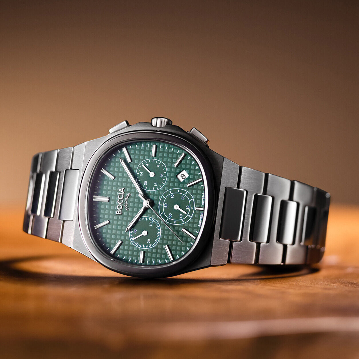 Главная особенность часов BOCCIA — использование чистого титана. Этот материал значительно легче нержавеющей стали, при этом обладает высокой прочностью и устойчивостью к коррозии. Благодаря титановому корпусу часы практически не ощущаются на руке, что делает их идеальным выбором для ежедневного ношения, в том числе в течение всего дня.
