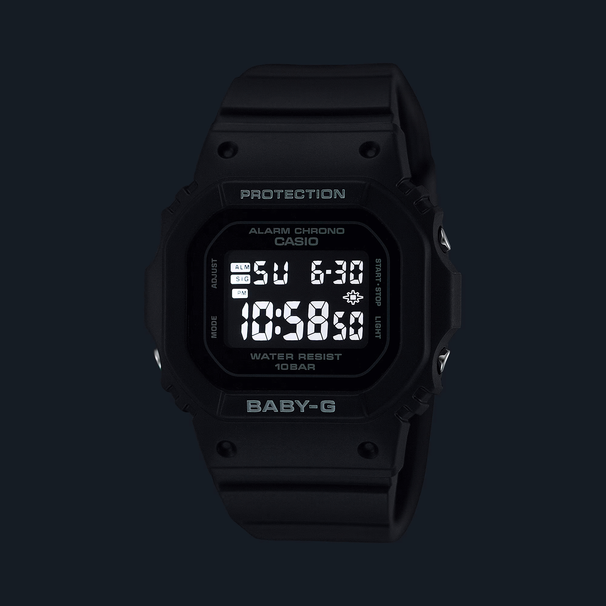 Каждая модель BABY-G рассчитана на водонепроницаемость не менее 100 метров. Носите её без опасений во время работы у воды, плавания или сноркелинга.*