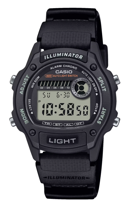 Это цифровые часы среднего размера, идеально подходящие даже для тонкого запястья, благодаря корпусу диаметром 36,6 мм. Их круглой формы корпус выполнен из черного полимерного материала, что обеспечивает легкость и прочность. У часов есть полностью автоматическая светодиодная подсветка, которая активируется при необходимости, а специальная кнопка на передней панели позволяет включать подсветку вручную для удобства.