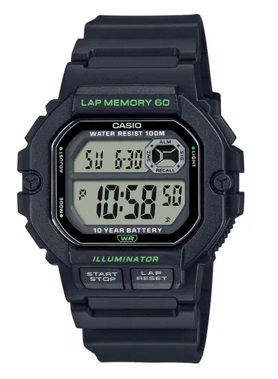 Это японские мужские наручные часы Casio WS-1400H-1AVEF с кварцевым механизмом высокой точности. Корпус часов выполнен из серебристого полимерного пластика, что делает их легкими и прочными. В них присутствует широкий набор функций: