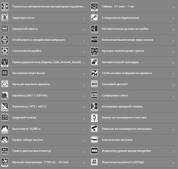 Дополнительные функции расширяют возможности часов и делают их полезными не только для спорта, но и для путешествий. Некоторые модели оснащаются датчиками, такими как термометр, барометр, компас и альтиметр, что позволяет использовать часы в качестве вспомогательного навигационного инструмента. Современные версии поддерживают технологии энергосбережения и точной синхронизации времени.