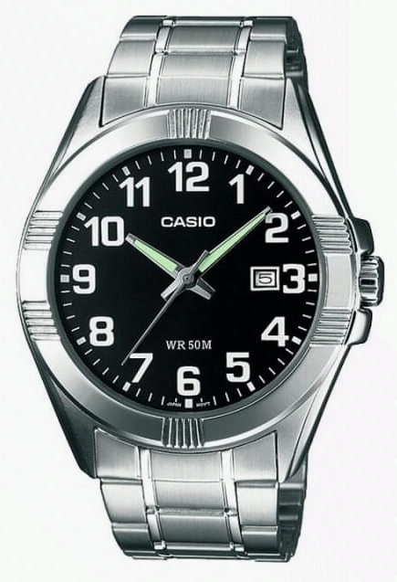 Casio MTP-1308D-1B — классические мужские часы с датой и неоновыми стрелками