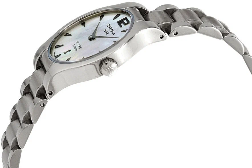 Система DS расшифровывается Double Security - Двойная Надежность.С виду женственная модель внутри – крепкий орешек. Корпус с концепцией DS выполнен из прочного гипоаллергенного титана. Циферблат - натуральный морской перламутр.