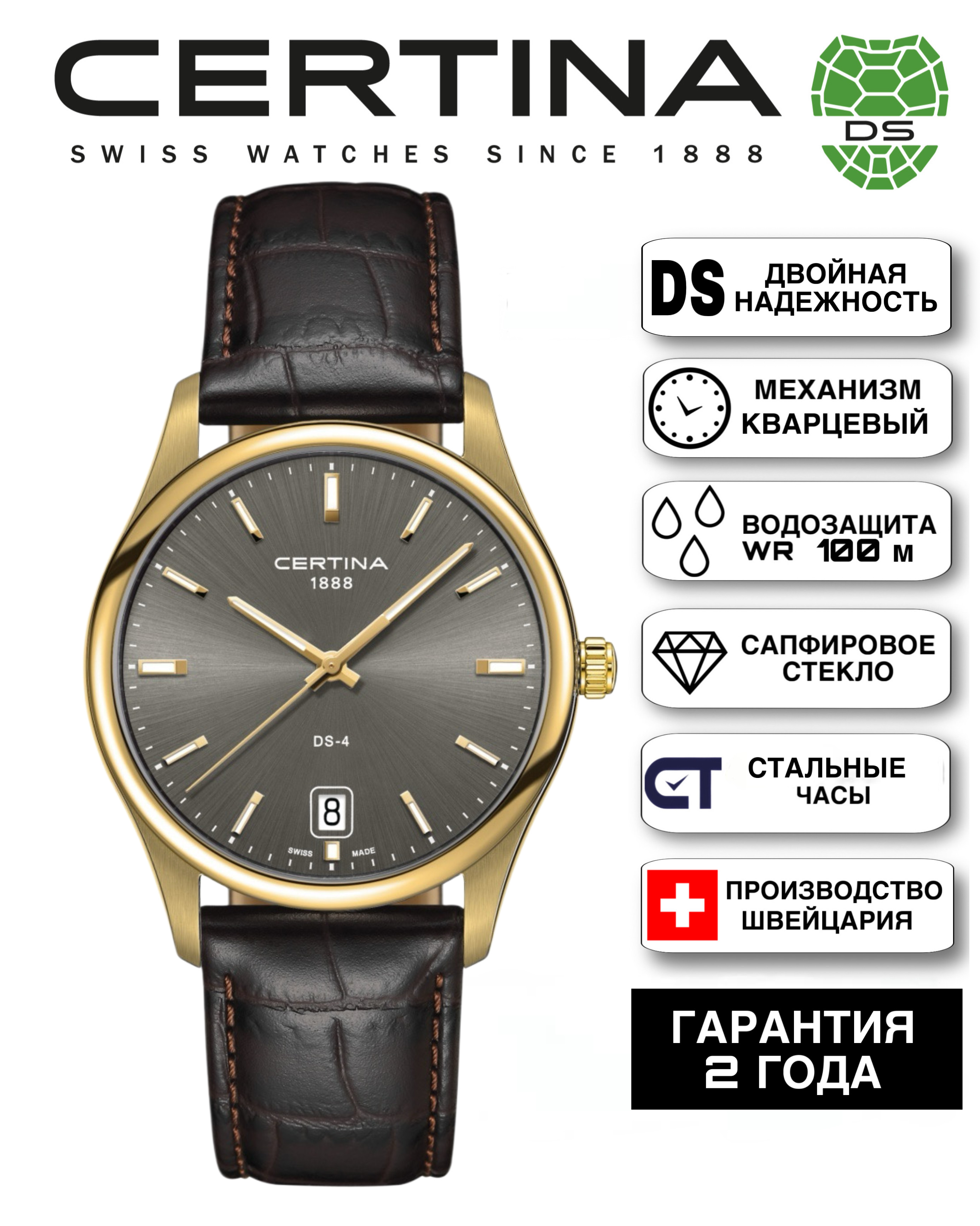Мужские швейцарские часы с двойной защитой Certina DS-4 C022.610.36.081.00