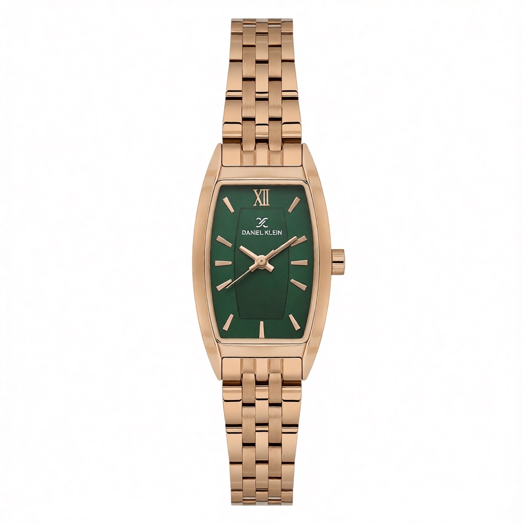 Daniel Klein DK14107‑5 — элегантные кварцевые часы для женщин, которые ценят утончённый дизайн и надёжность. Бочкообразный корпус цвета розового золота в сочетании с зелёным циферблатом создаёт изысканный образ, подчёркивающий индивидуальность и хороший вкус.