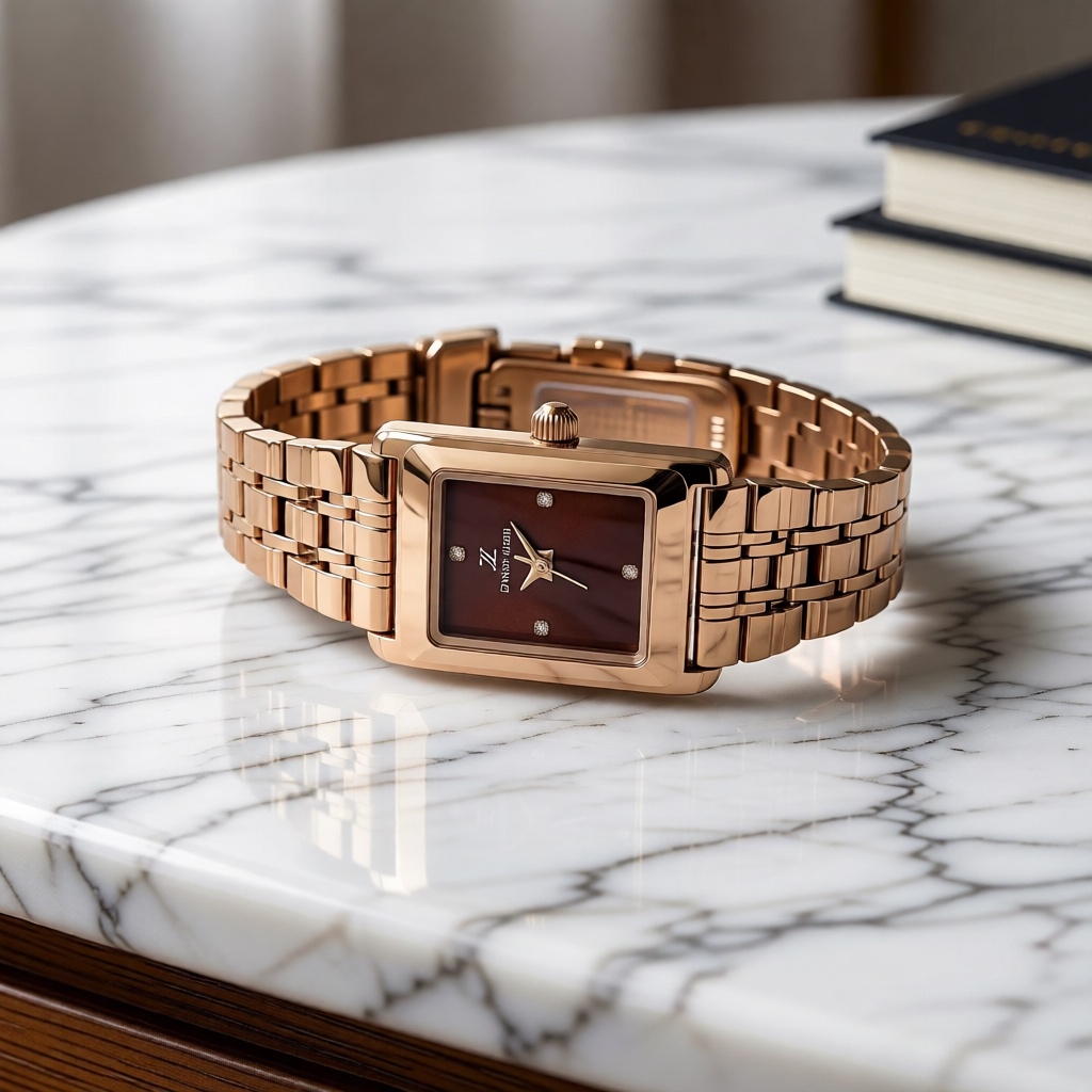 женщин, предпочитающих модные аксессуары — прямоугольный корпус и золотисто‑хромированное исполнение создают современный и эффектный образ;