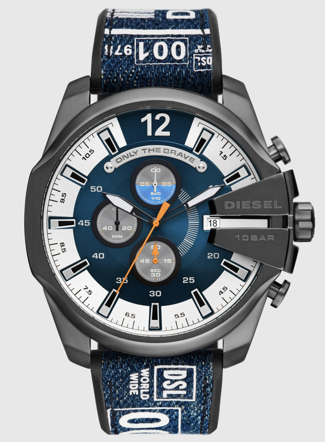 Часы оснащены эффектным синим циферблатом с солнечным (sunray) эффектом, который красиво играет на свету и придаёт глубину внешнему виду. Крупный корпус диаметром 51 мм подчёркивает брутальность модели и делает её заметной на запястье.