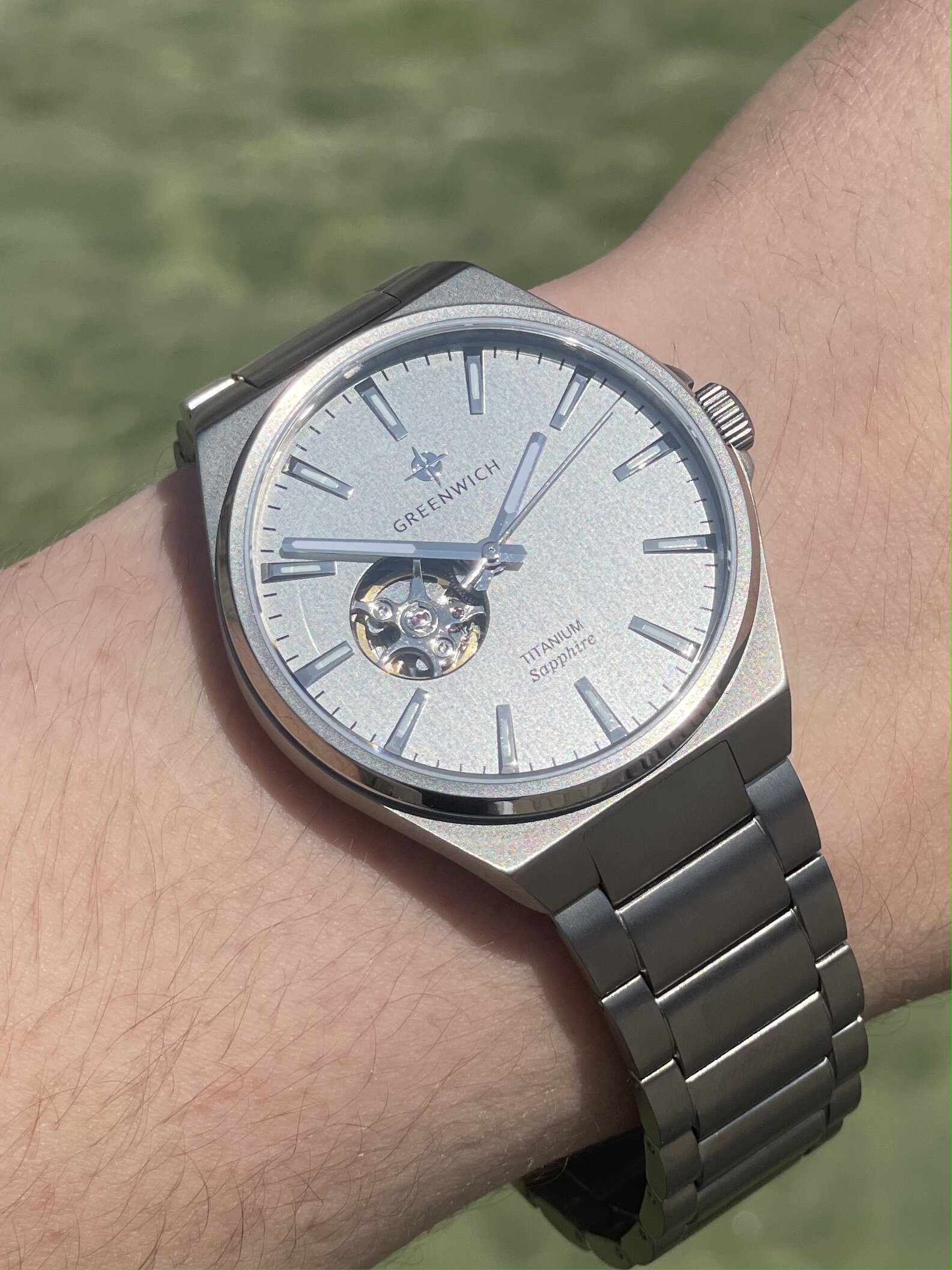 Сапфировое стекло устойчиво к царапинам, а водозащита 10 АТМ позволяет использовать часы во время плавания. Титановый браслет обеспечивает комфортную посадку на запястье.