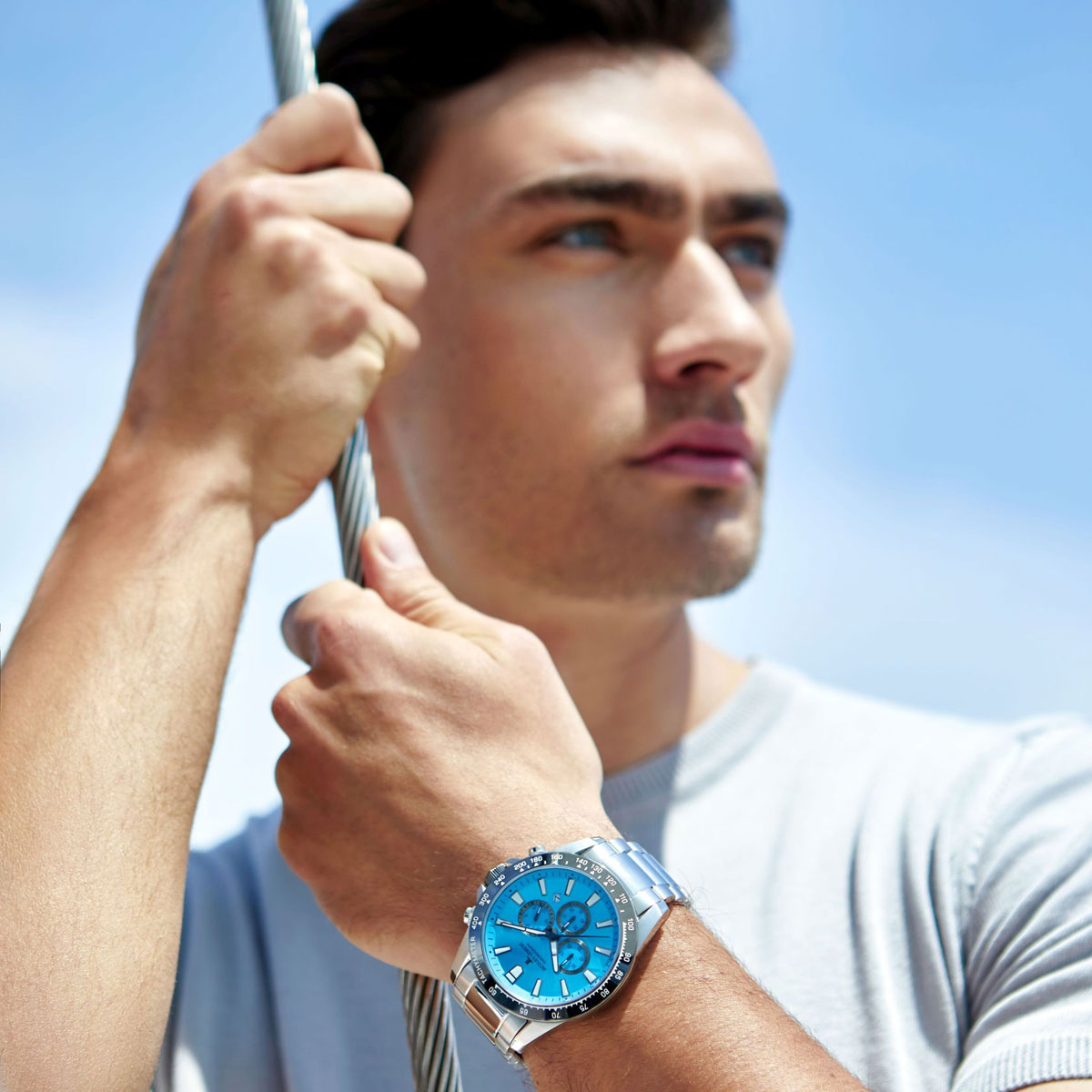 Циферблат: небесно-голубой с дополнительными индикаторами и датой