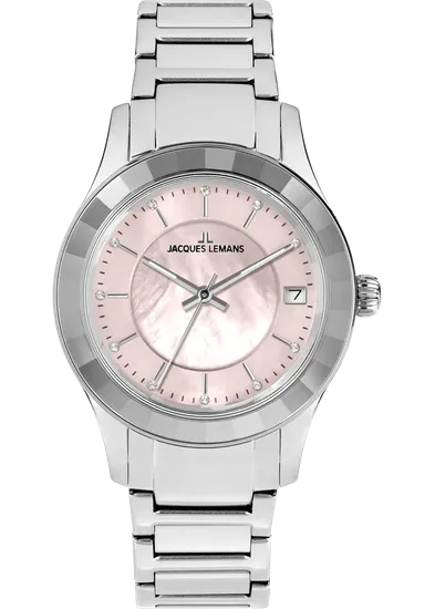 Элегантные женские часы Jacques Lemans Venice 1-2194D — изысканная модель, в которой классическая роскошь сочетается с современными дизайнерскими решениями. Объёмный циферблат из натурального перламутра — фирменный приём последних женских серий бренда — акцентирует внимание на трёх центральных стрелках, часовая и минутная из которых покрыты люминесцентным составом для комфортного считывания времени в условиях слабого освещения.
