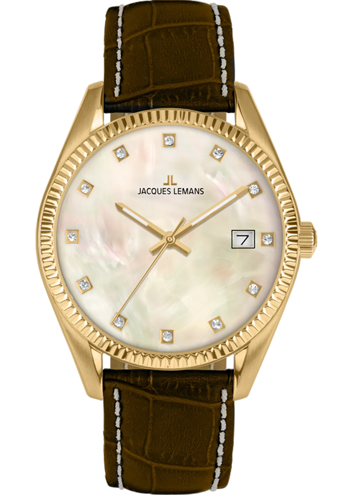 Элегантные женские часы Jacques Lemans 50-4Y Derby, выпущенные к 50-летнему юбилею бренда. Корпус из нержавеющей стали с PVD-покрытием под жёлтое золото, циферблат из натурального перламутра с 12 фианитами и функцией даты. Надёжный кварцевый механизм TMI и водозащита 10 ATM делают модель стильной и практичной для повседневного ношения.
