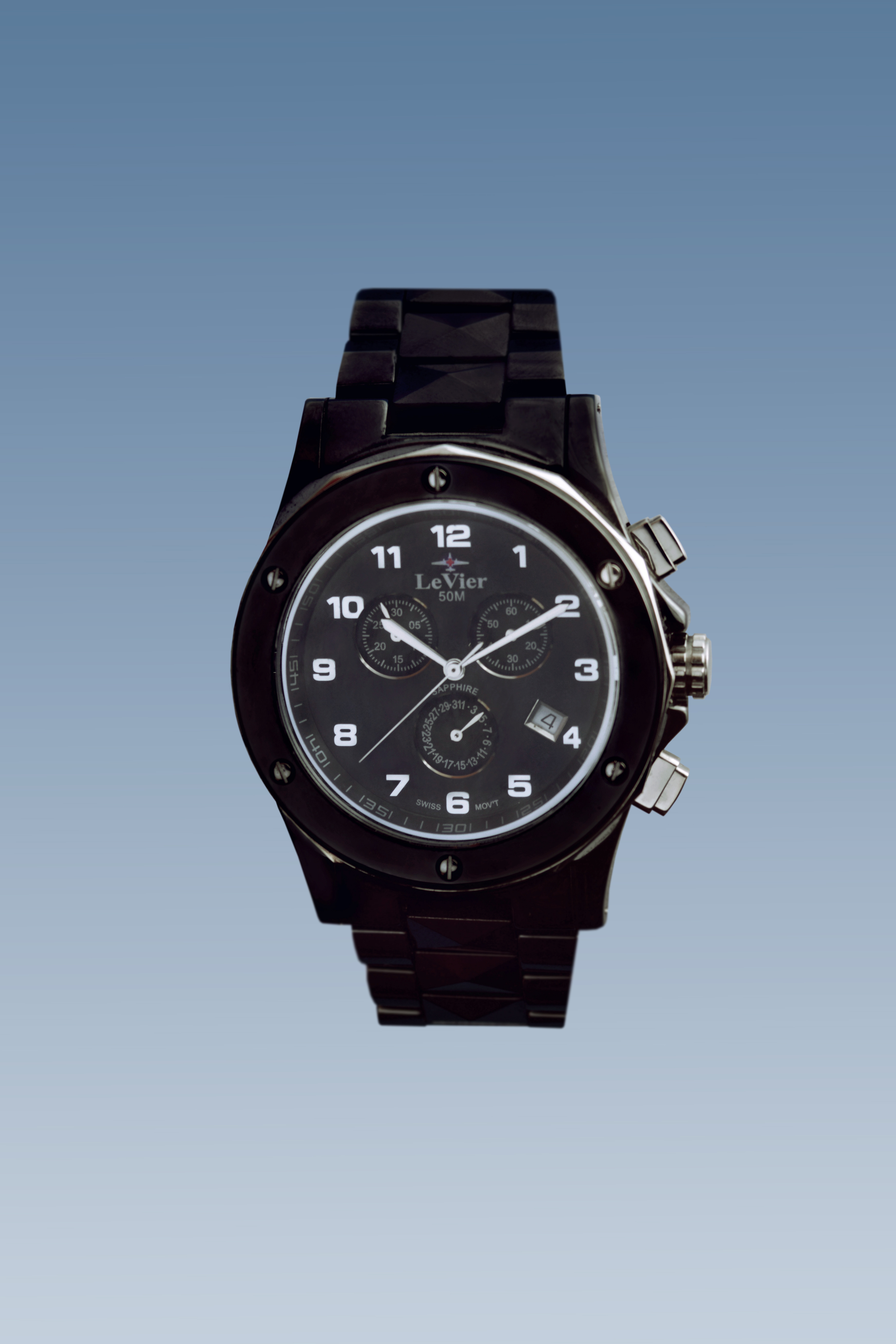 Корпус и браслет выполнены из высоко-технологической керамики, которая не подвержена коррозии и абсолютно безалергена ( то есть 100% не вызывает аллергию, как некоторые виды стали и сплавов). На циферблате есть дата, показывающая число месяца. Швейцарская батарейка фирмы Ronda обеспечивает бесперебойное питание часов от 3 до 5 лет. Сапфировое стекло обеспечивает прекрасный вид времени на циферблате. Сапфировое стекло обладает высокой прочностью и его практически невозможно поцарапать в обычной повседневной деятельности, так как такое стекло можно поцарапать только твердым алмазом, а обычные вещи как: ножи, ключи, монеты, гвозди, саморезы, дверные ручки и так далее не оставят следов на сапфировом стекле. Часы водонепроницаемые WR 50 m, то есть в часы могут попасть в воду и силиконовые прокладки у заводной головки, задней крышки и кнопок не пропустят воду внутрь часов. Завинчивающаяся задняя крышка с изображением самолета невидимки B-2, который приходится центром логотипа бренда LeVier. Лозунг часовой марки - "Быть выше неба". С часами идет большая красивая подарочная коробка размером 14 -13 -8 см с логотипом LeVier внутри и снаружи. Международная гарантия и руководство на нескольких языках, включая русский.