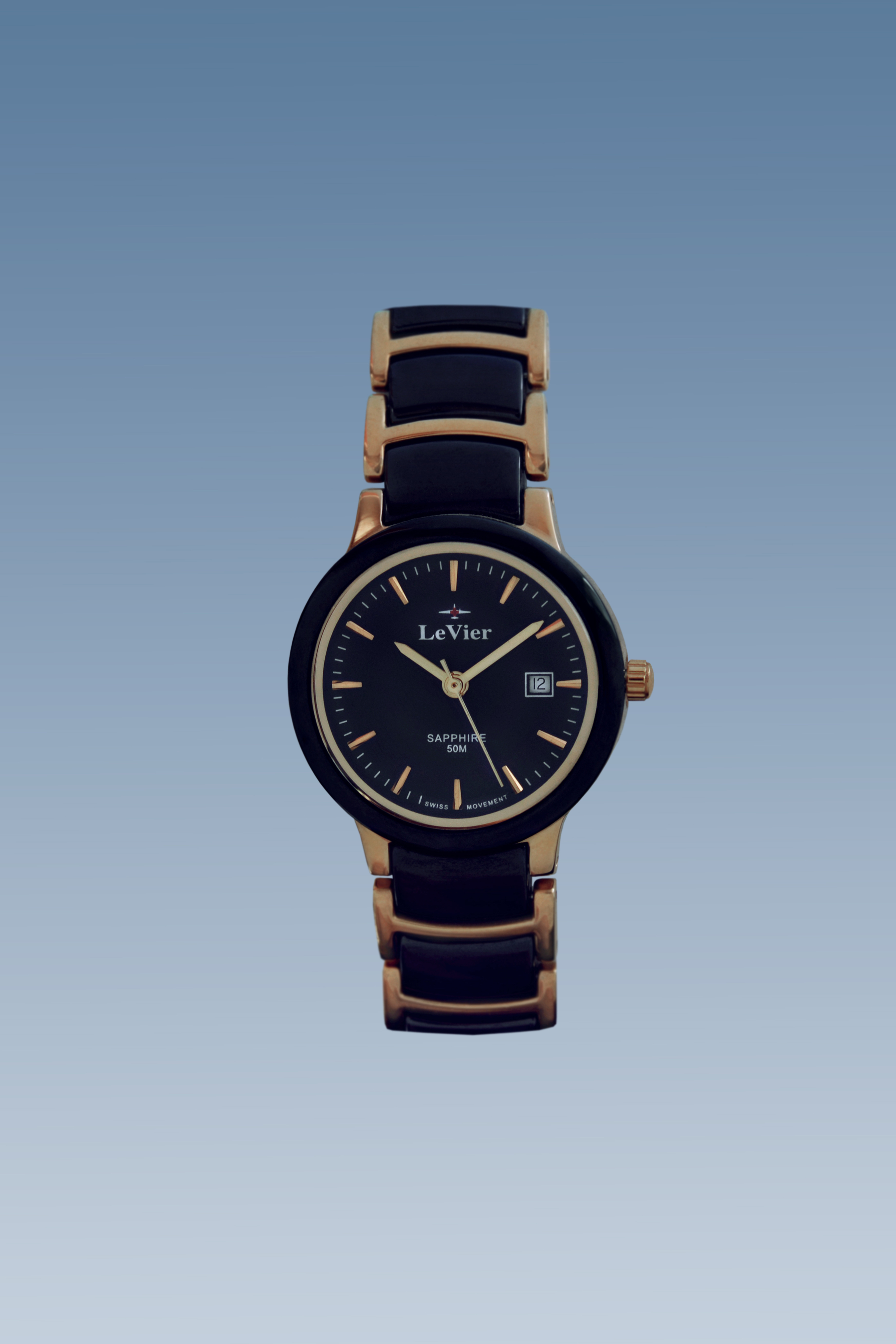 Корпус и браслет выполнены из высоко-технологической керамики, которая не подвержена коррозии и абсолютно безалергена ( то есть 100% не вызывает аллергию, как некоторые виды стали и сплавов). На циферблате есть дата, показывающая число месяца. Швейцарская батарейка фирмы Ronda обеспечивает бесперебойное питание часов от 3 до 5 лет. Сапфировое стекло обеспечивает прекрасный вид времени на циферблате. Сапфировое стекло обладает высокой прочностью и его практически невозможно поцарапать в обычной повседневной деятельности, так как такое стекло можно поцарапать только твердым алмазом, а обычные вещи как: ножи, ключи, монеты, гвозди, саморезы, дверные ручки и так далее не оставят следов на сапфировом стекле. Часы водонепроницаемые WR 50 m, то есть в часы могут попасть в воду и силиконовые прокладки у заводной головки, задней крышки и кнопок не пропустят воду внутрь часов. Завинчивающаяся задняя крышка с изображением самолета невидимки B-2, который приходится центром логотипа бренда LeVier. Лозунг часовой марки - "Быть выше неба". С часами идет большая красивая подарочная коробка размером 14 -13 -8 см с логотипом LeVier внутри и снаружи. Международная гарантия и руководство на нескольких языках, включая русский.