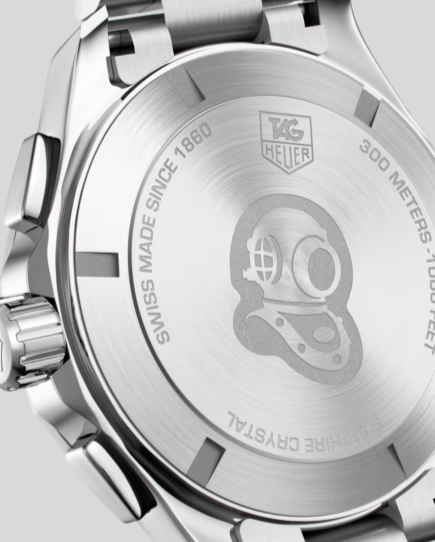 ЭДЕМЕНТЫ: Часовые метки и стрелки с люминесцентным покрытием Super-LumiNova, окошко даты на отметке «3 часа», логотип TAG Heuer и надпись «300 METERS / 1000 ft», подчёркивающая уровень водонепроницаемости.