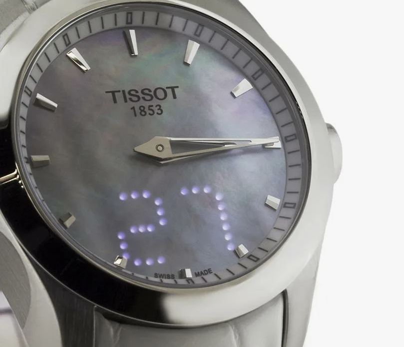 Tissot Couturier Secret Date Lad — электронное отображение даты/дня недели в нижней части циферблата при нажатии кнопки.