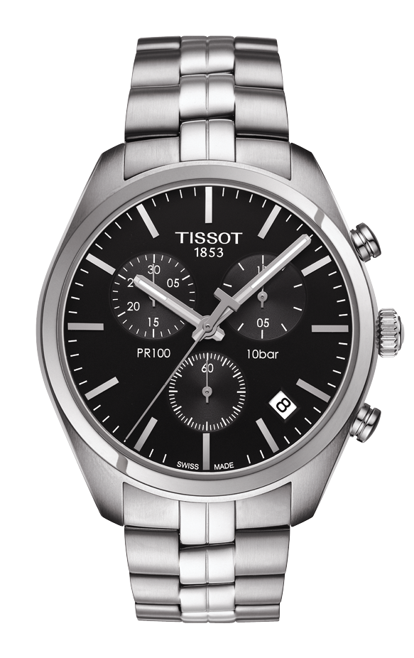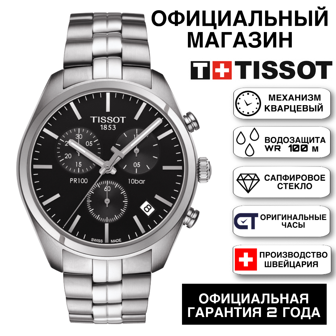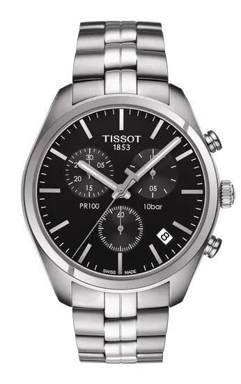 Часы мужские Tissot T101.417.11.051.00 PR 100 Chronograph, кварцевые, черный циферблат, стальной браслет, сапфировое стекло