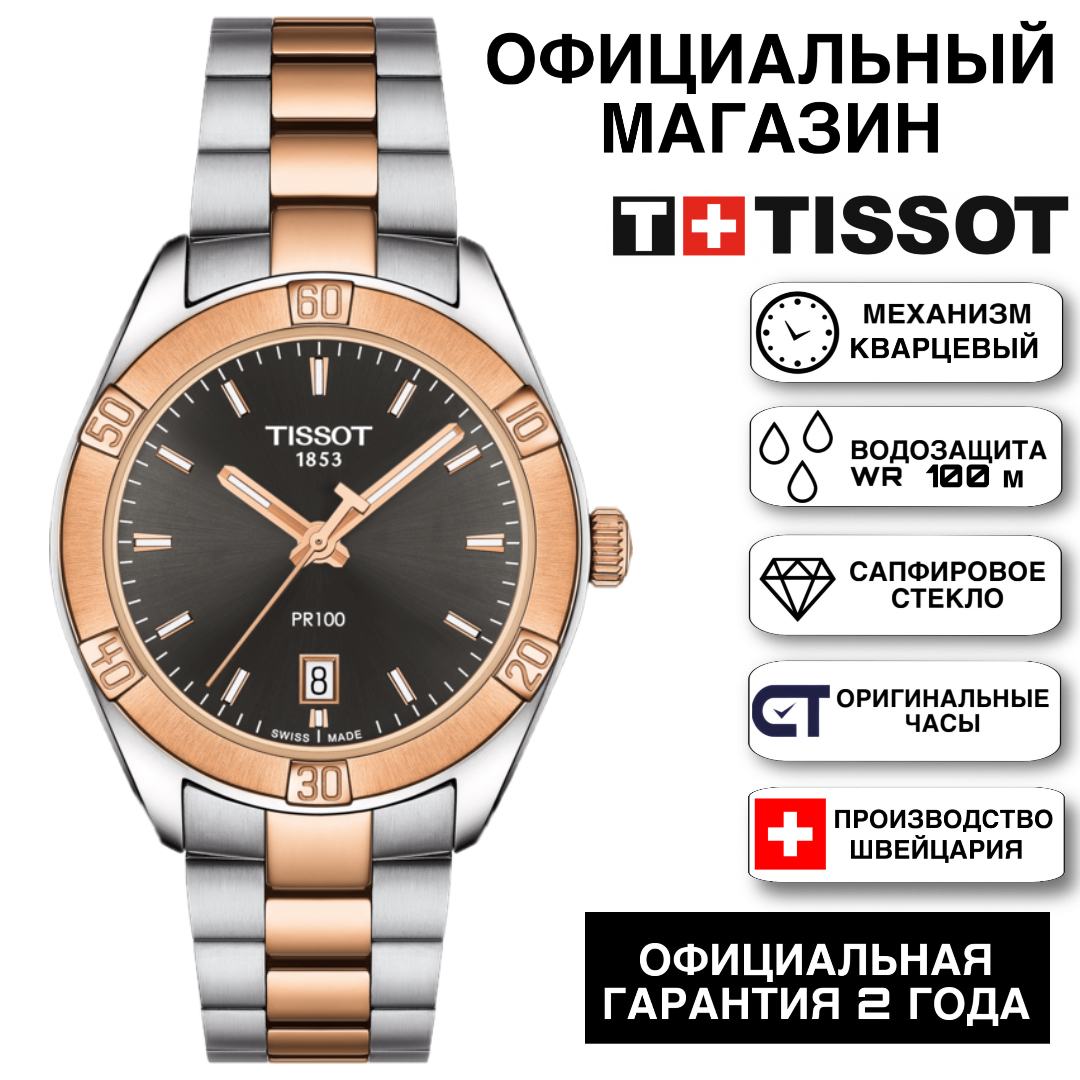 Элегантные женские часы из коллекции Tissot PR 100, сочетающие классический стиль и швейцарскую точность. Модель выполнена в универсальном двухцветном дизайне: корпус и браслет из нержавеющей стали дополнены покрытием цвета розового золота, что делает часы подходящими как для повседневного ношения, так и для более элегантных образов.