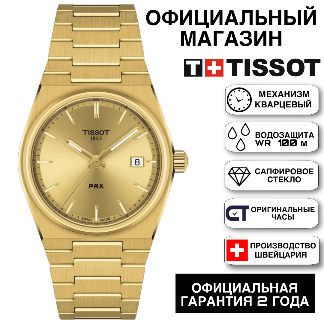 Tissot T137.210.33.021.00 женские наручные часы PRX 35 мм, кварцевые, сталь с PVD жёлтого золота, сапфировое стекло